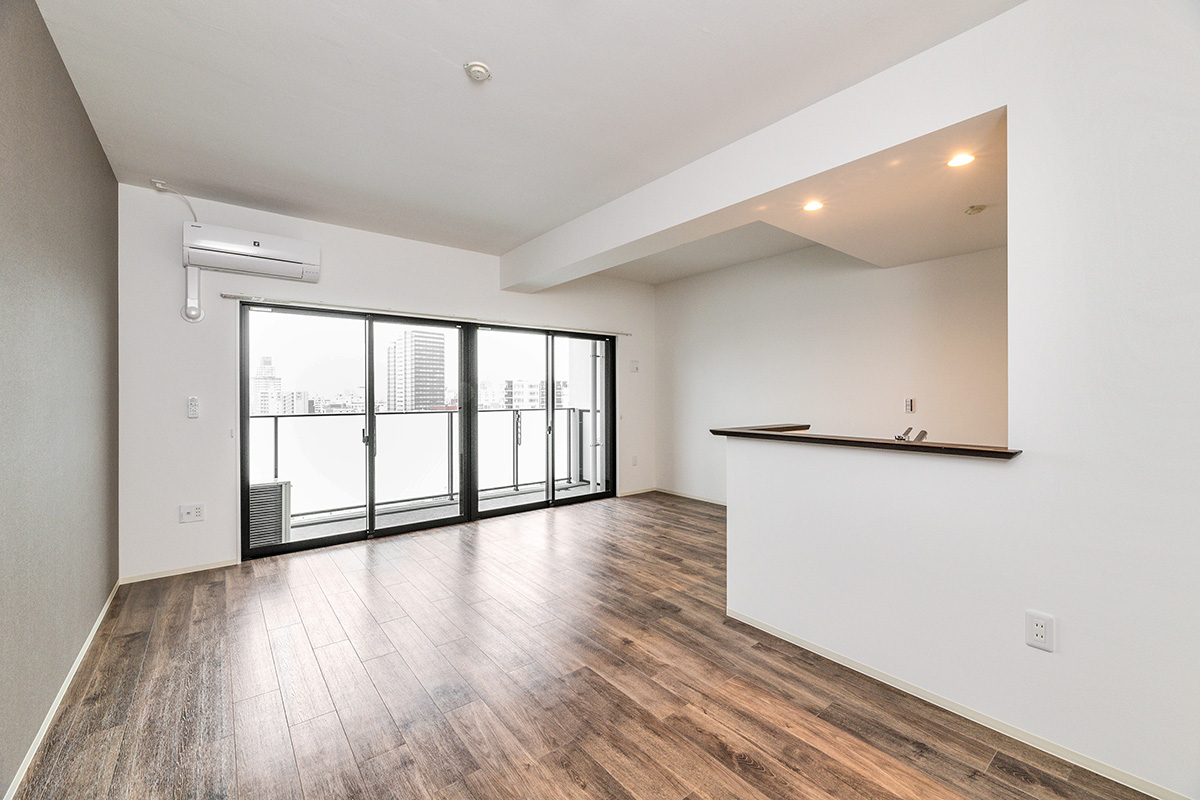 1LDK間取りのお部屋もベランダに面する窓が大きく明かるLDKがあります。