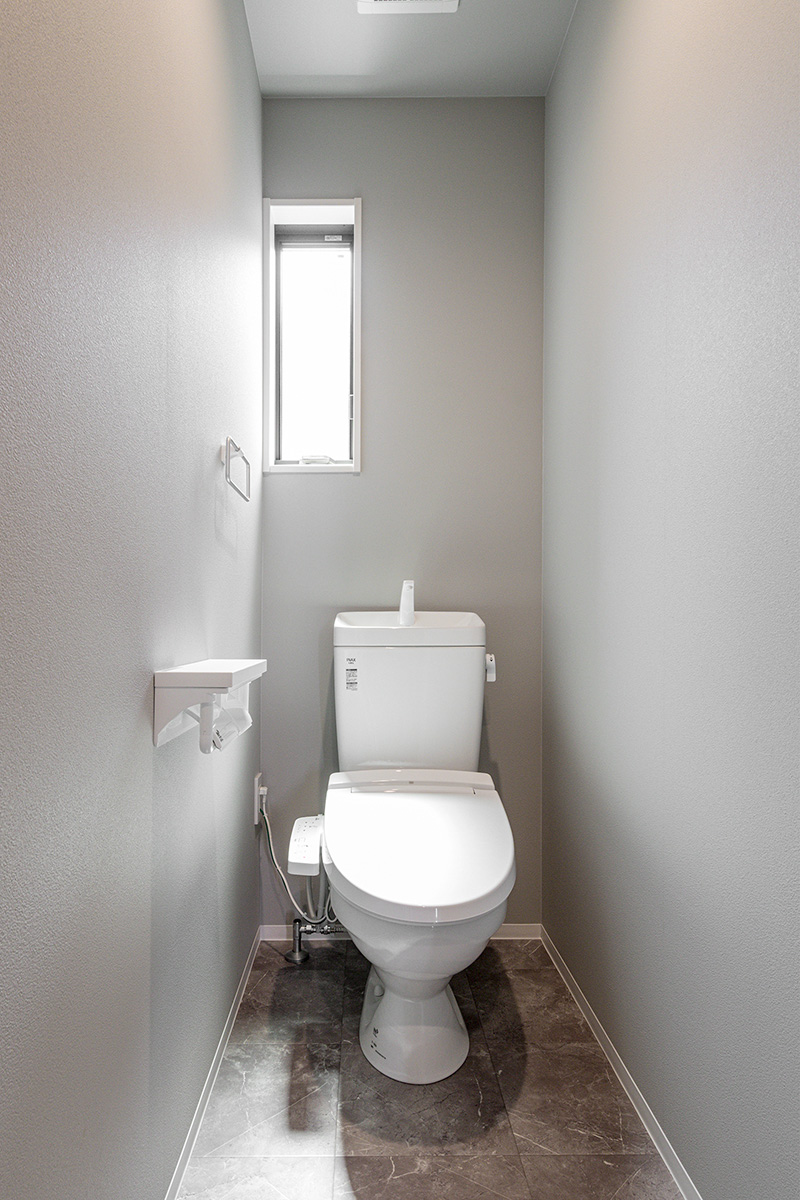 - アクセントクロスが1面にあり、おしゃれな窓付きトイレ