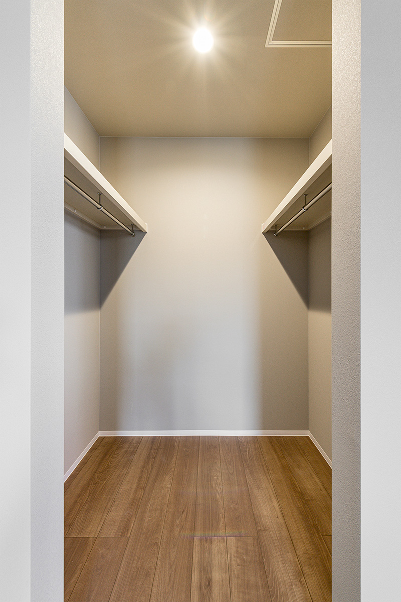 - 両サイドにハンガーパイプの付いた大容量のウォークインクローゼット