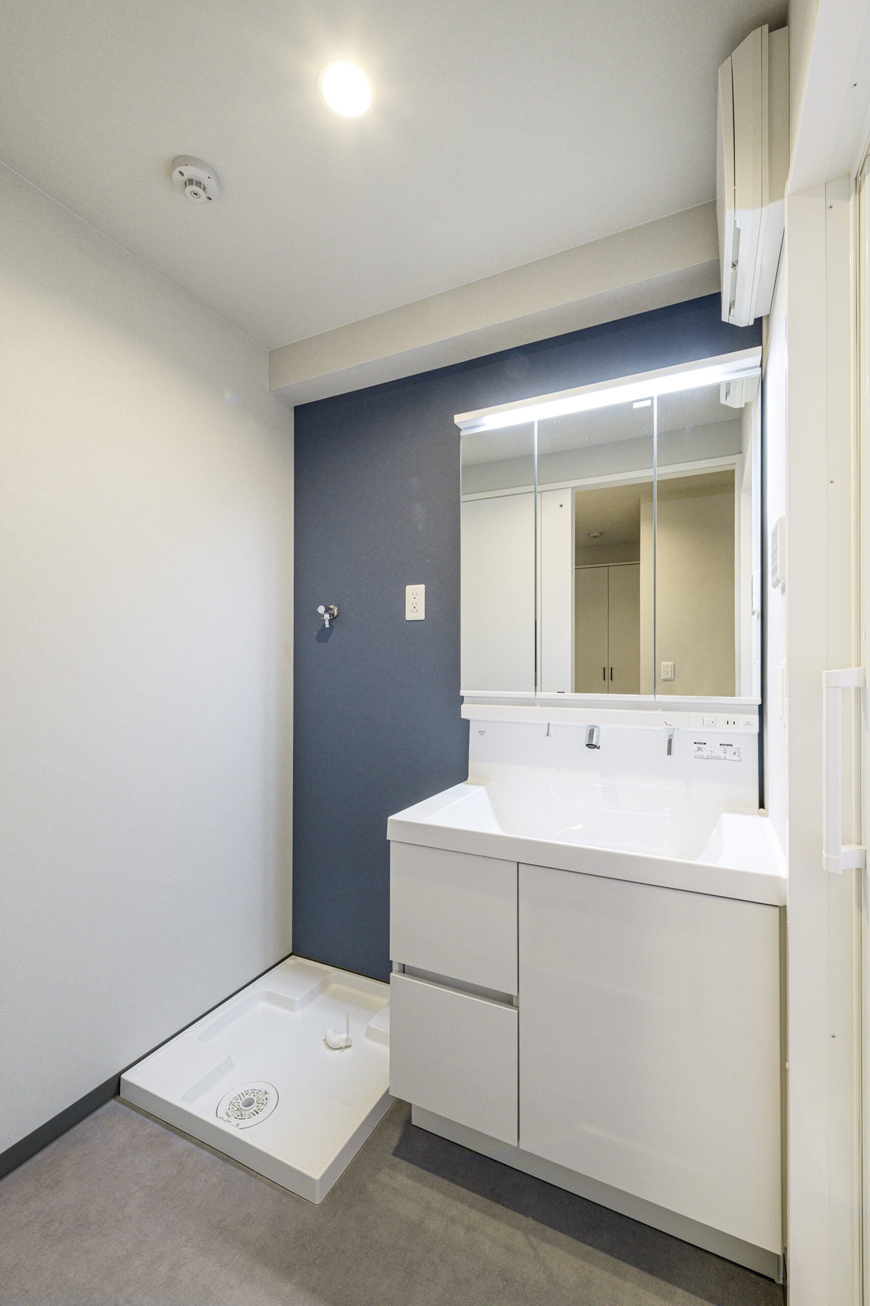 洗面台の色や広さ、壁紙デザイン、タオルハンガーの場所など、実際の施工例を参考にマンション経営をご検討ください。