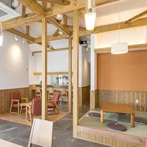愛知県海部郡蟹江町の約150坪の土地の木造1階建てナチュラルテイスト飲食店 店舗建築例