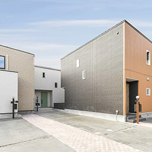 名古屋市天白区の約200坪の角地に建つスクエア型のモダンな色違いの外観デザインの戸建て賃貸住宅3LDK×7棟の施工事例です。
